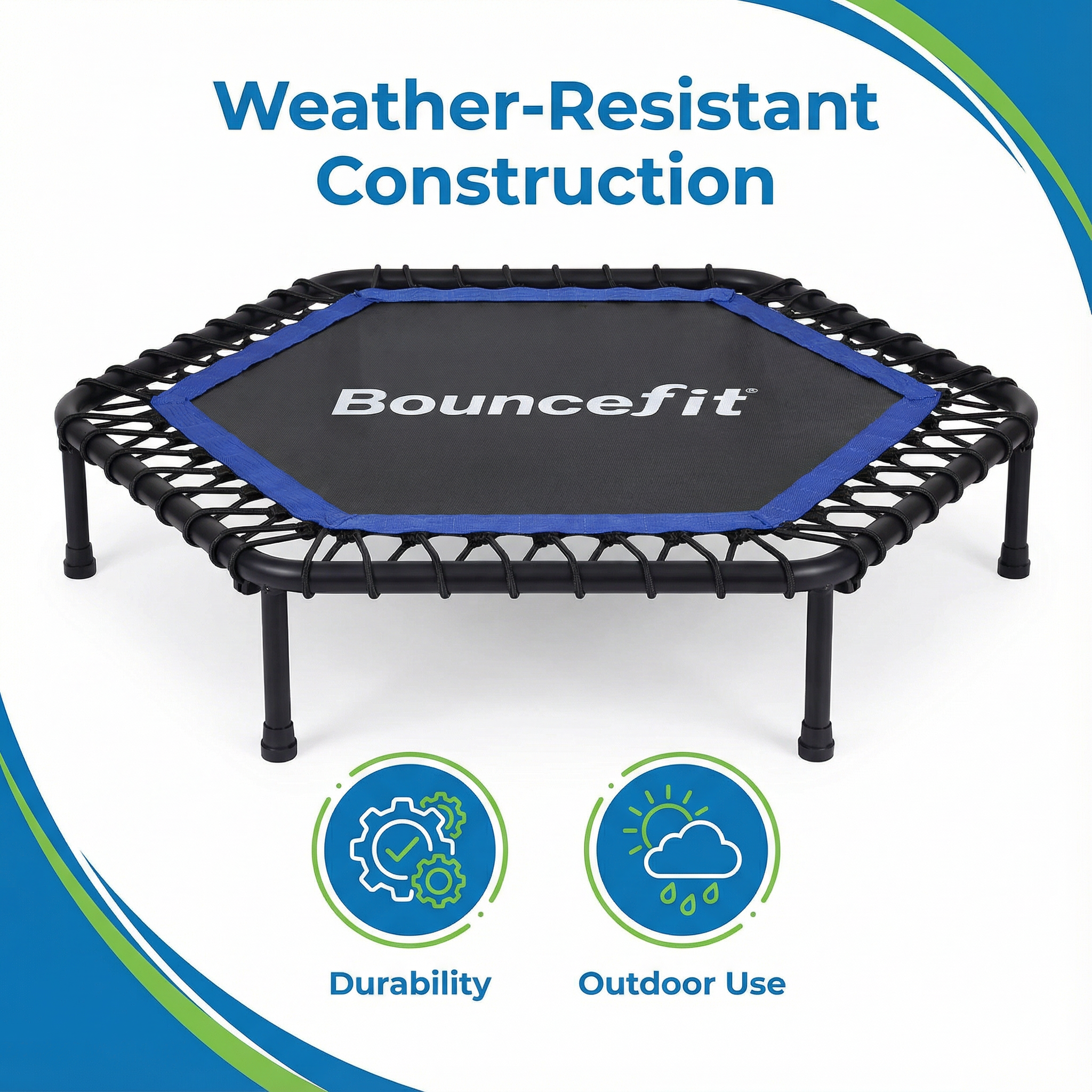 Yes! The BounceFit Trampoline is water-resistant and made with durable, rust-proof materials, making it perfect for both indoor and outdoor use. However, we recommend storing it indoors when not in use to extend its lifespan.