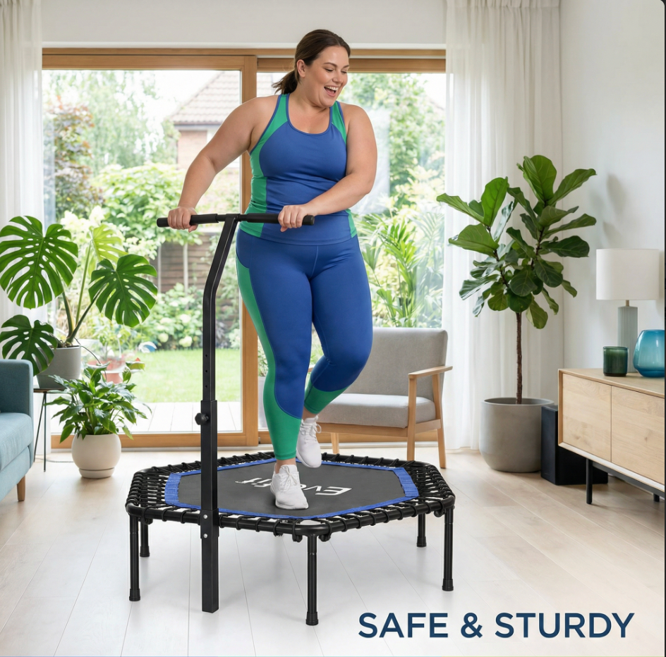 Ditch boring workouts and jump into a new fitness routine! The BounceFit Exercise Trampoline makes burning calories exciting while being gentle on your joints. Enjoy a full-body workout that boosts energy, improves balance, and keeps you motivated—all from the comfort of home!