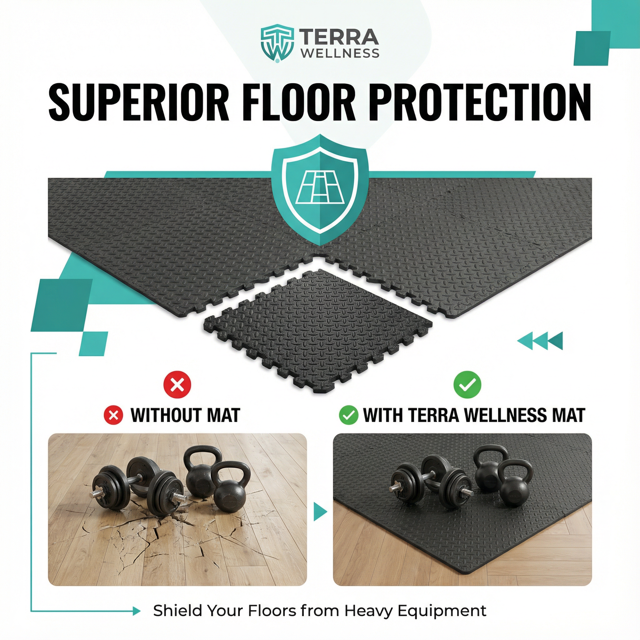 Cheaper mats may crack, shift, or lose cushioning after a few uses. Terra Wellness™ Premium Gym Mats are made with durable, high-density EVA foam and reinforced top-layer protection, ensuring long-lasting performance that won’t let you down mid-workout.