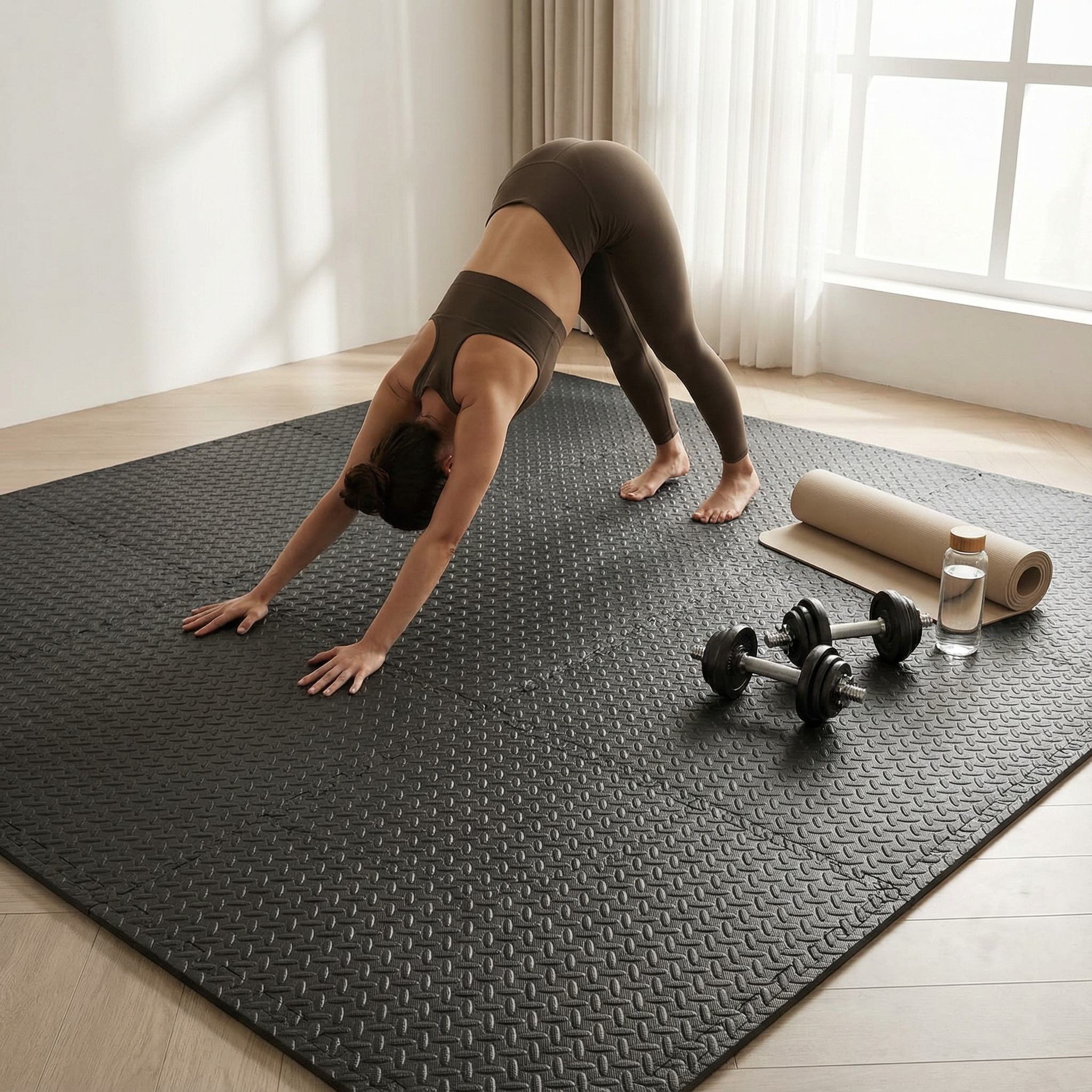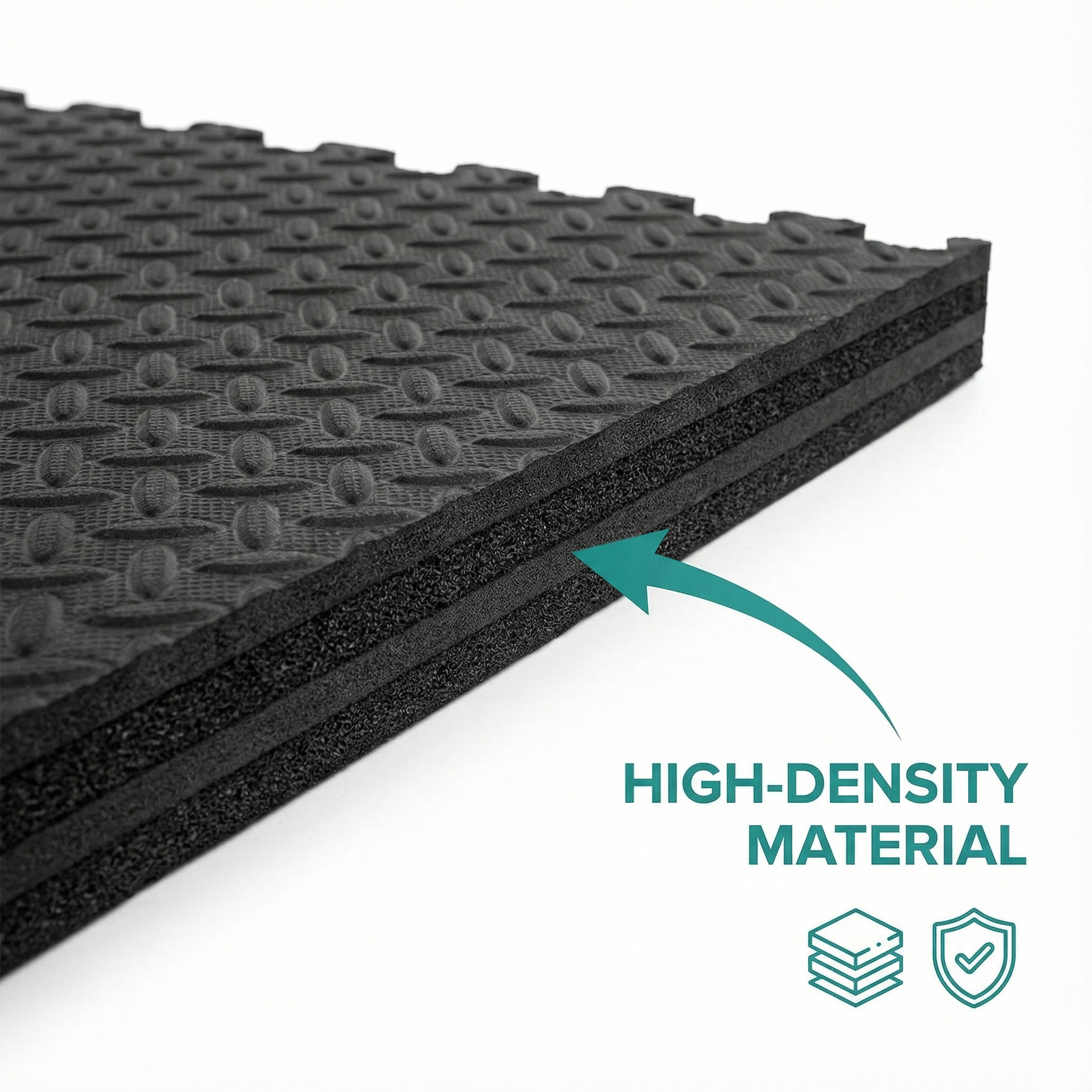 Crafted with ultra-dense, non-toxic EVA foam, these mats won’t compress, tear, or lose shape — even under heavy weights and intense cardio. They’re water-resistant, easy to clean, and built to last through years of training.