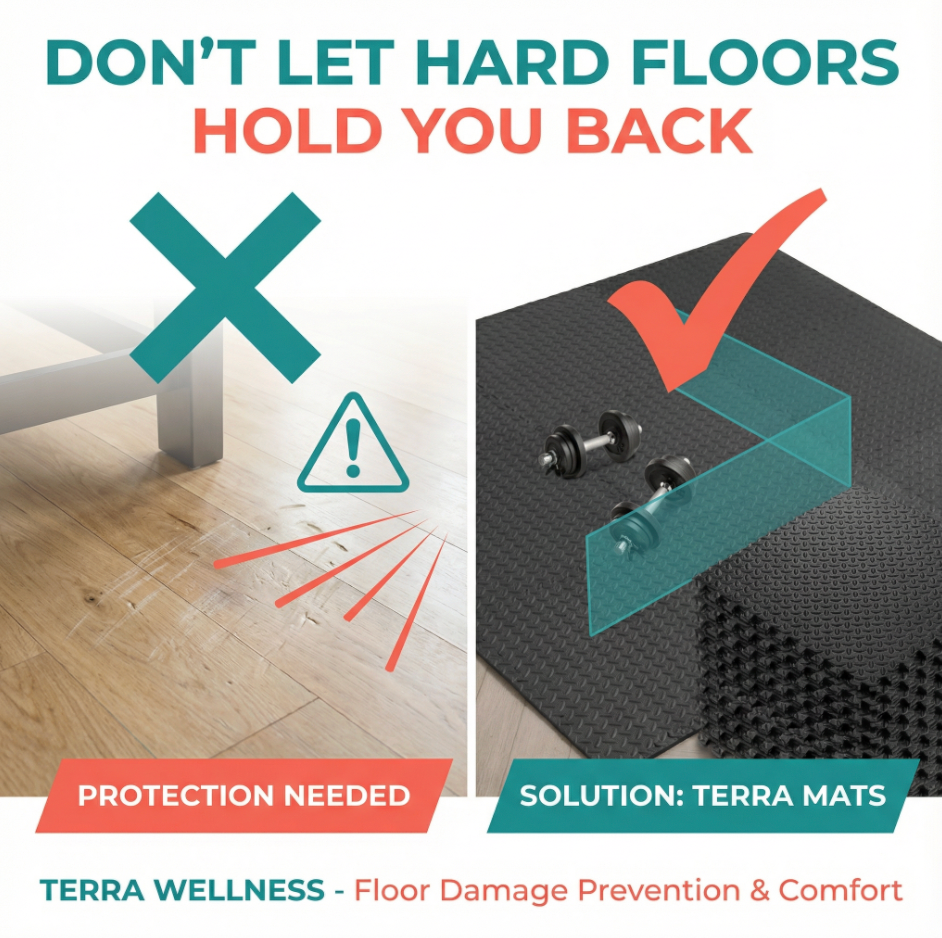 Don’t let hard floors, joint pain, or damage hold you back. Invest in Terra Wellness™ Premium Gym Mats today and create a safe, comfortable workout space that lasts. With our 90-day money-back guarantee, the only thing you’ll lose is the risk.