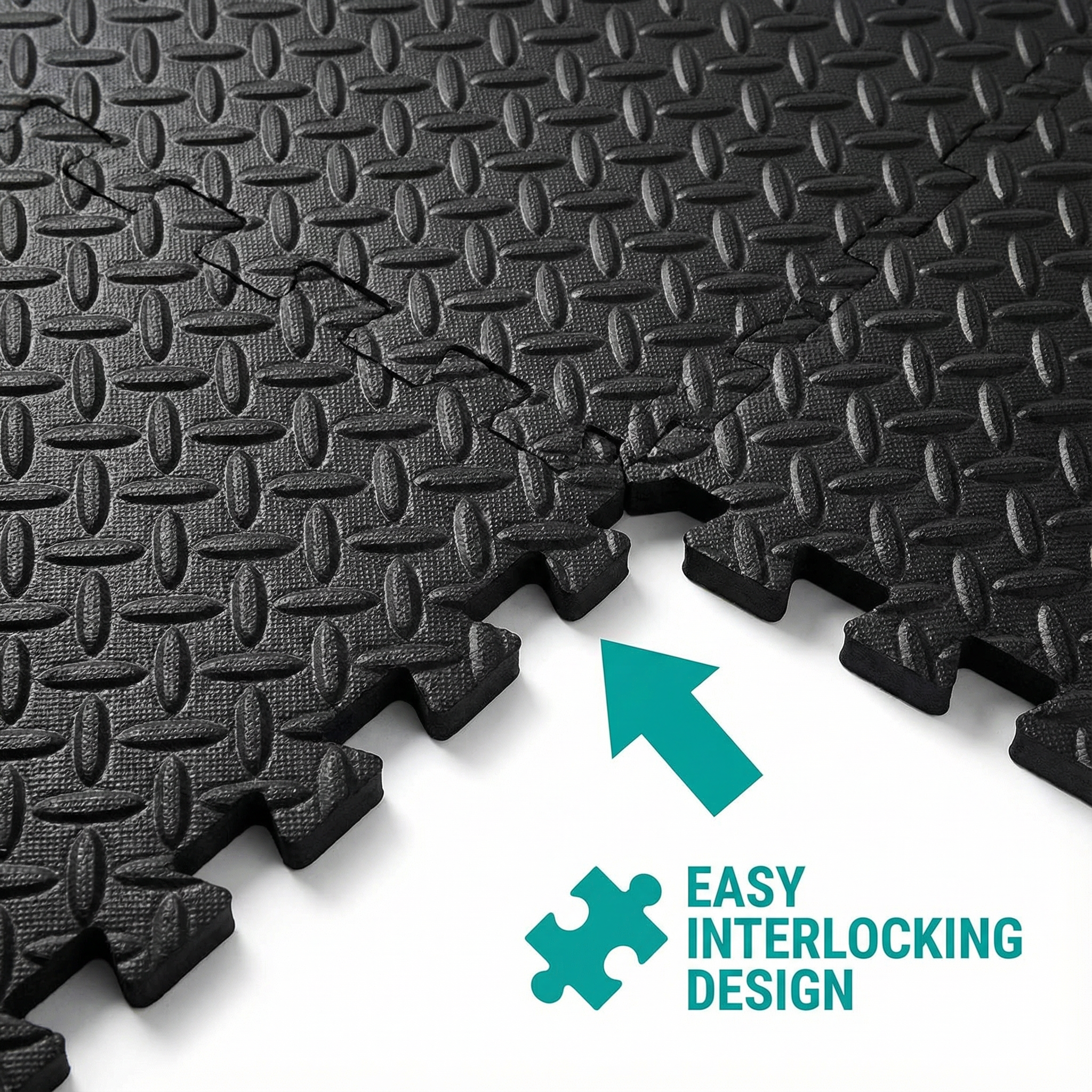 Yes — installation is quick and tool-free. Each mat uses interlocking puzzle edges so you can create a seamless surface that perfectly fits your home gym, garage, or workout area.