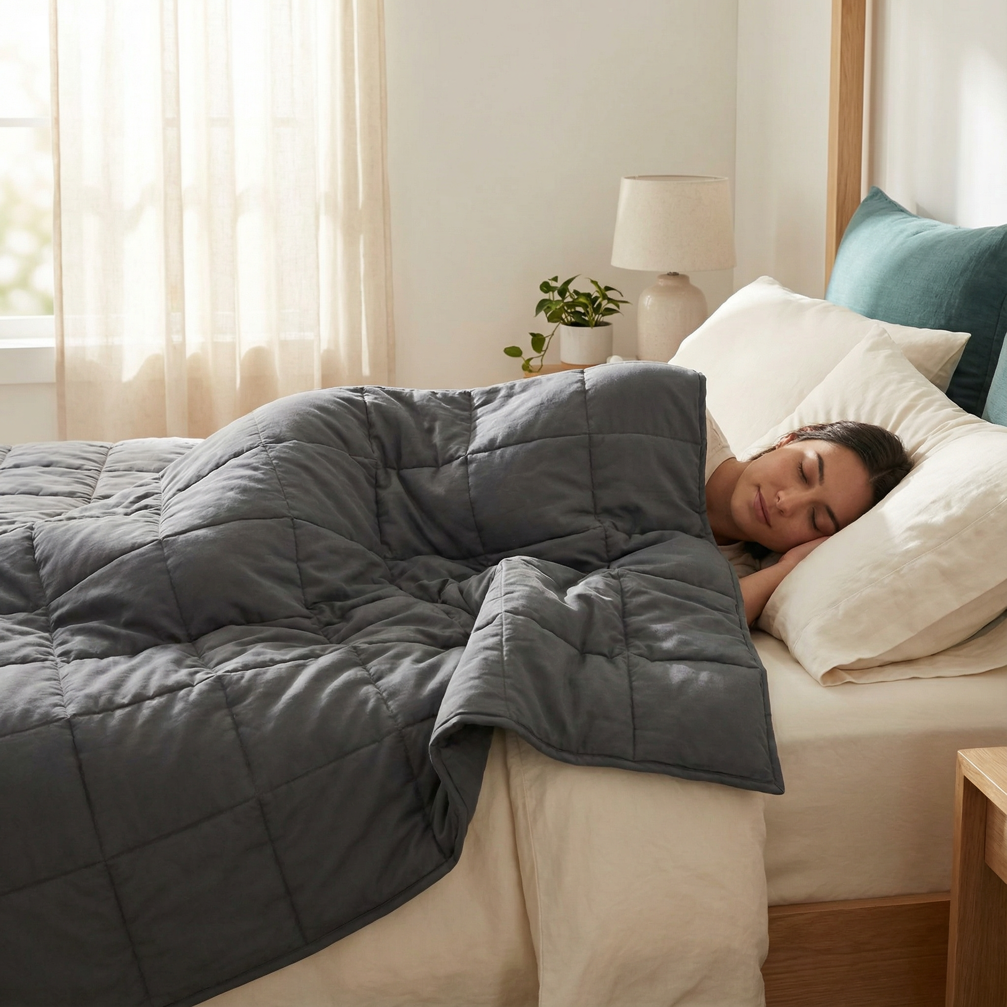 Transform your nights! Our Weighted Blanket melts stress, calms anxiety, and helps you fall asleep faster — waking deeply rested and restored. Cozy comfort, proven sleep benefits, 90‑day risk‑free trial + free shipping. Shop now and upgrade your sleep!