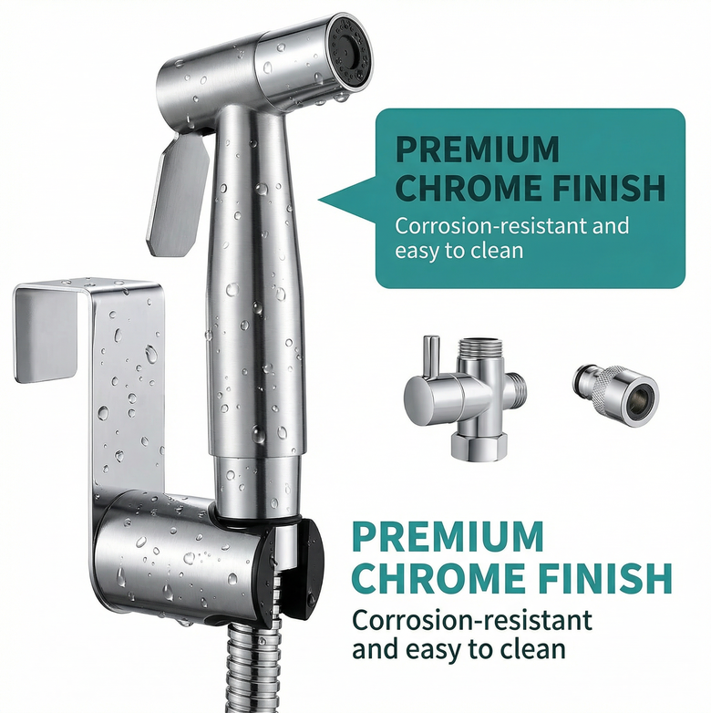 Crafted from 304 stainless steel with lead-free brass fittings, our Premium Handheld Bidet Sprayer is built for durability, pressure control, and leak resistance. Backed by a 90-day money-back guarantee, you can upgrade your hygiene routine with total confidence.