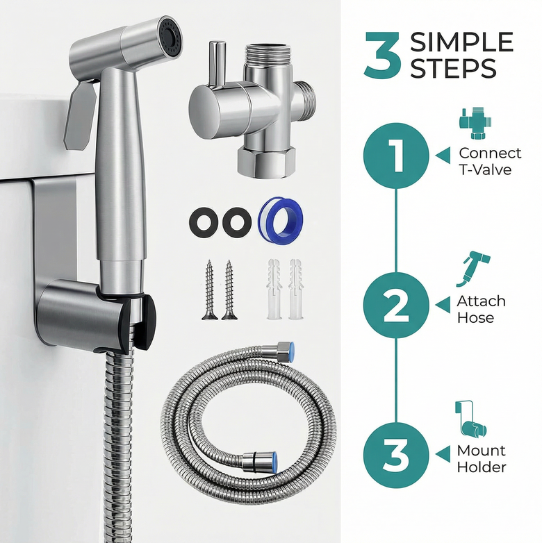 Upgrade your hygiene routine! Our Premium Stainless Steel Handheld Bidet Sprayer delivers a deeper, fresher clean while reducing toilet paper use and waste. Built for durability, adjustable pressure comfort, and effortless DIY installation — plus a 90-day risk-free trial & free shipping. Shop now and experience a cleaner, more confident you today.