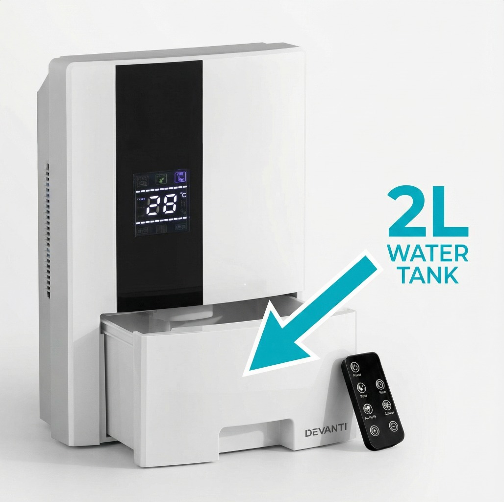 Unlike bulky, noisy alternatives, our 2L Dehumidifier stands out for its sleek design, ultra-quiet operation, and energy-efficient performance. It’s engineered to fit seamlessly into your home while delivering powerful moisture removal. Plus, with our 90-day money-back guarantee, you can try it with total confidence.