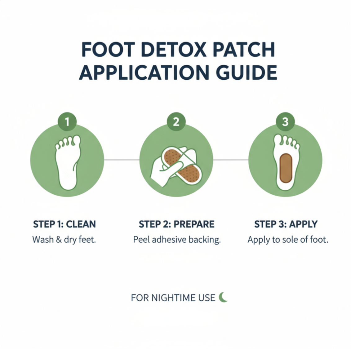 Our patches use a blend of natural ingredients like bamboo vinegar and tourmaline to draw out impurities through the soles of your feet while you sleep. This helps promote circulation, relaxation, and a deep sense of renewal overnight.