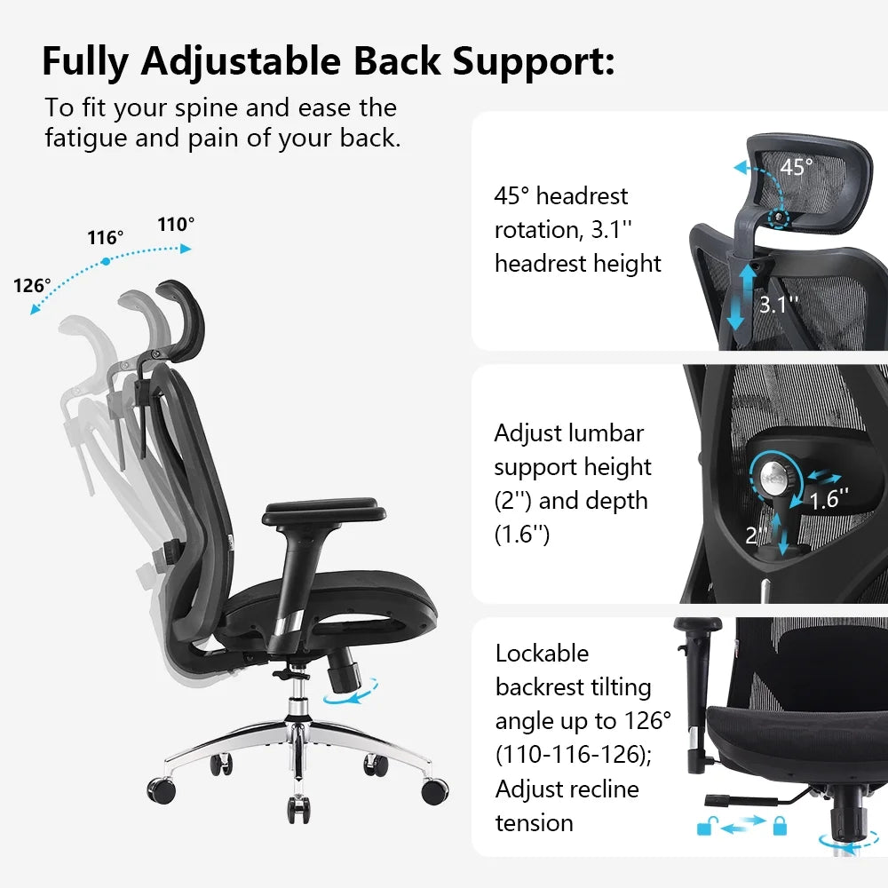 Our chair is designed to support your spine's natural curvature, reduce pressure on your lower back, and enhance your posture.With adjustable features to fit your unique body, you’ll feel refreshed and focused, even during the longest workdays.
