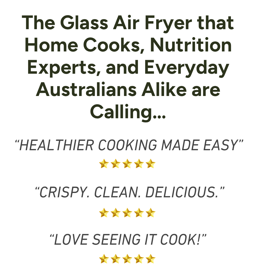 "Was skeptical at first, but this glass air fryer really works. I use it almost daily, and my meals turn out amazing. Plus, the glass basket lets me see the food as it cooks—no more overcooking or guesswork. My whole family loves it!"