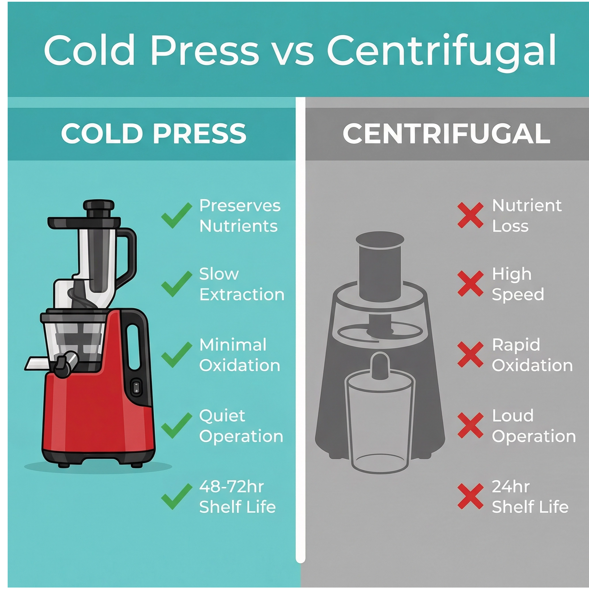 Unlike fast centrifugal juicers, our Cold Press Juicer combines precision extraction technology with adaptive pressure that preserves 95% of vital nutrients and extracts 35-40% more juice from your produce. And with our 90-day risk-free trial, you can feel confident knowing you'll love the nutritional difference it makes.