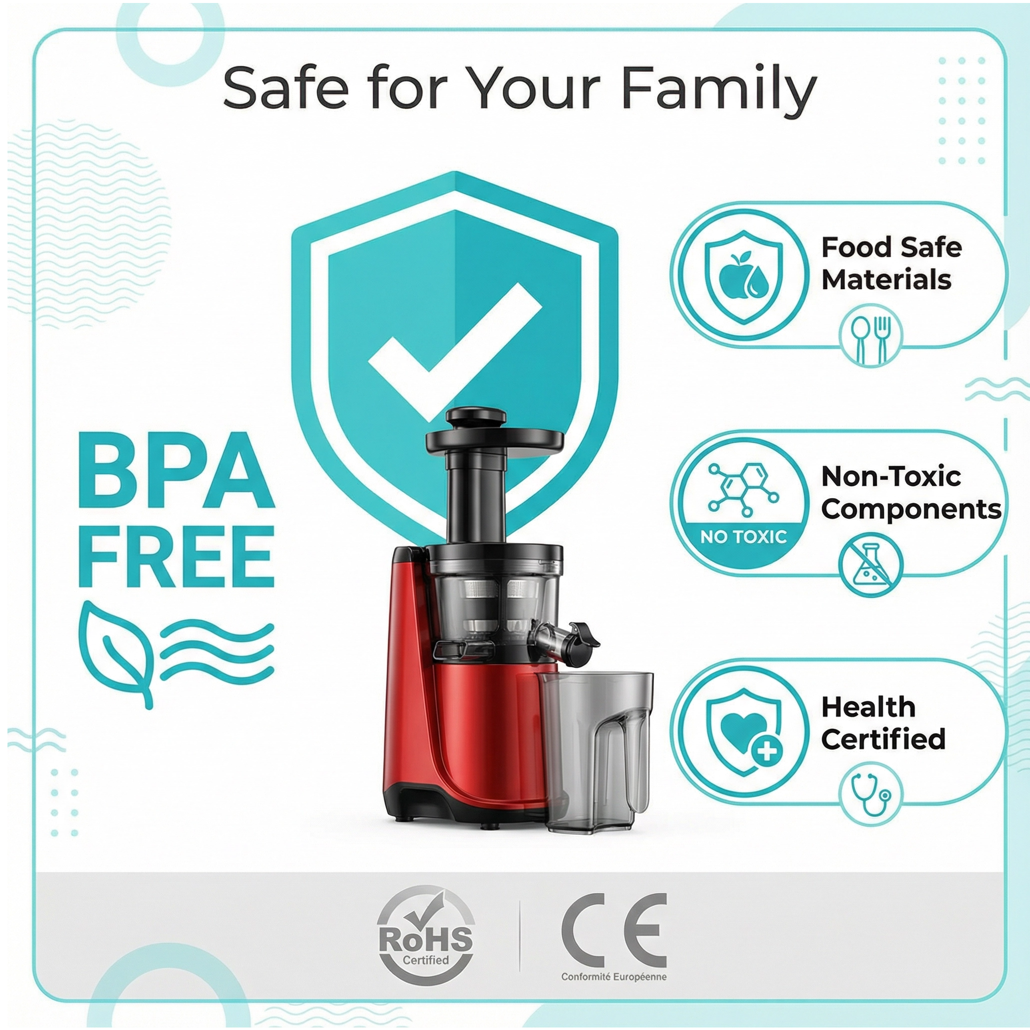 Enjoy peace of mind with food-safe, BPA-free materials and hassle-free maintenance with our quick 5-minute cleanup process and dishwasher-safe components. Simply load your favorite fruits and vegetables, press start, and enjoy fresh, nutrient-rich juice in minutes—making daily wellness effortless and sustainable.