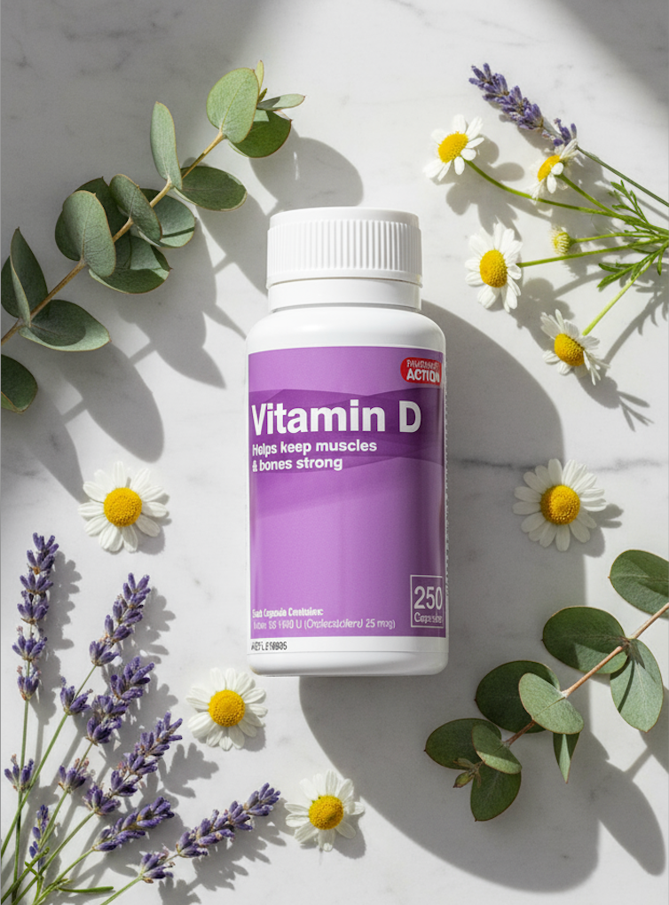 Unlike generic supplements, our Vitamin D3 is bioavailable cholecalciferol (1000 IU) — the same form your body produces from sunlight. We focus on purity, absorption, and emotional balance, not fillers or artificial additives.