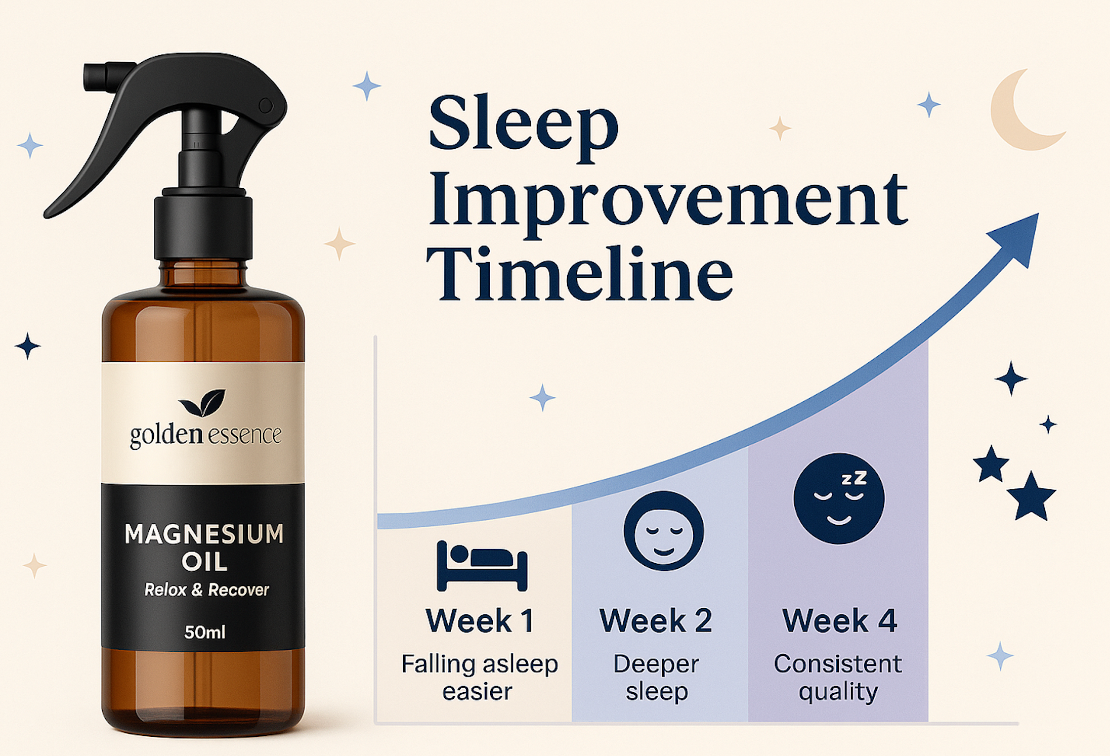If stress, tight muscles, or restless nights keep you awake, our fast-absorbing magnesium oil helps you unwind naturally. It relieves tension, quiets the mind, and promotes deep, restful sleep without pills or side effects.