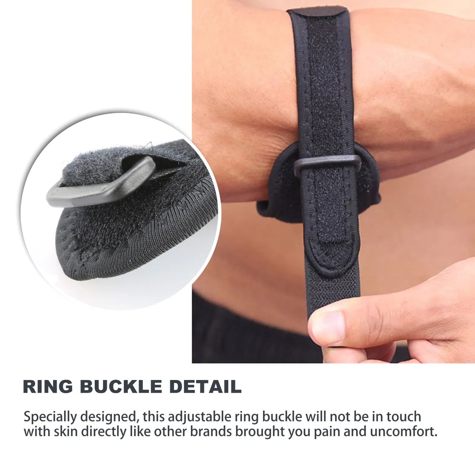 The adjustable strap system ensures a secure, customizable fit for most forearm sizes, keeping the brace snug but comfortable.