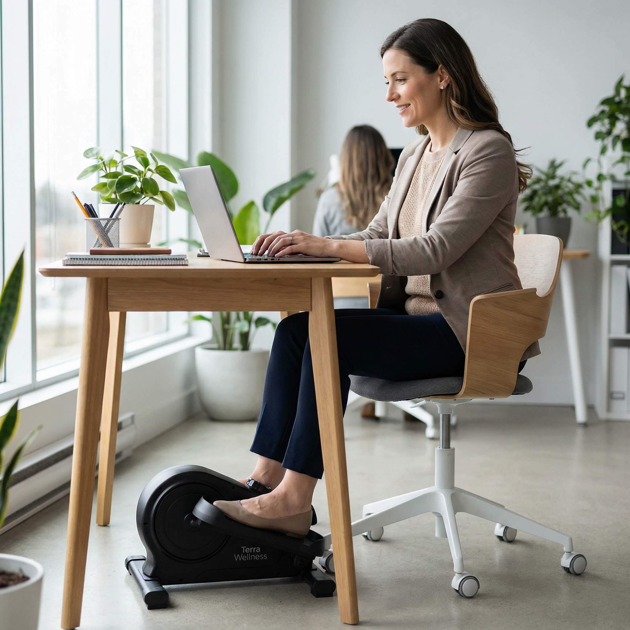 Reclaim the energy your body craves. Our Terra Wellness Under Desk Exercise Bike utilizes whisper-quiet resistance technology to seamlessly integrate movement into your workday, promoting increased circulation and sustained energy throughout any task.