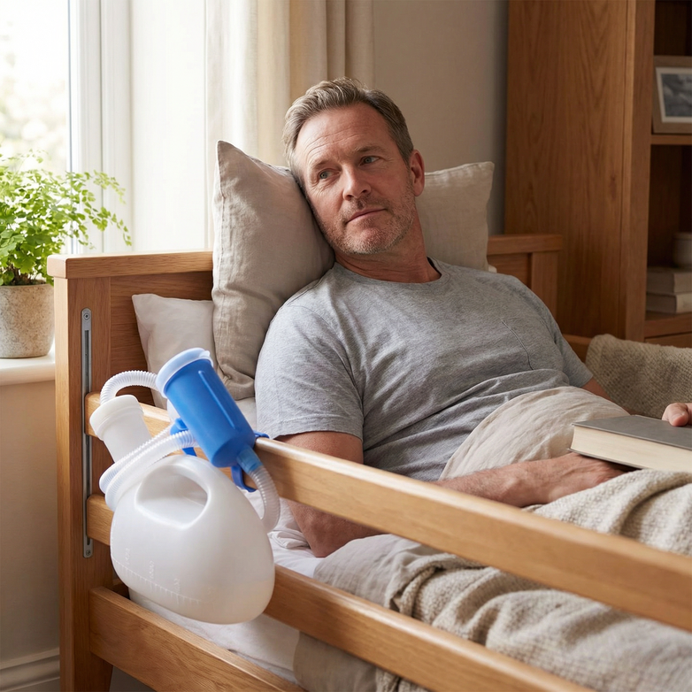 Absolutely. The wide-mouth opening, lightweight body, and integrated carry handle make it easy to use independently for elderly users or those with limited mobility, including overnight bedside use.