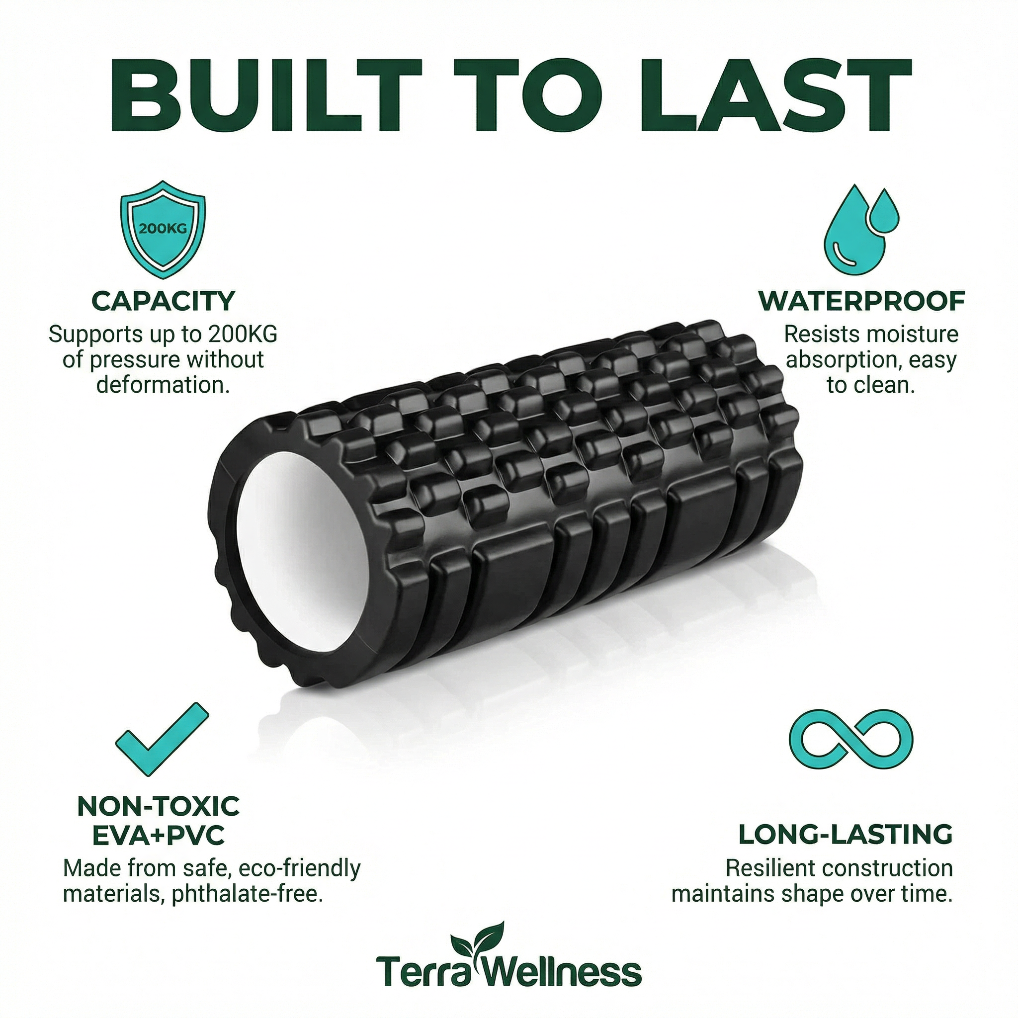 While budget rollers exist, they typically use low-density foam that flattens within weeks, losing effectiveness quickly. Our Terra Wellness roller features high-density EVA+PVC construction with a professional-grade 200kg weight capacity, ensuring it maintains its shape and therapeutic benefits even after months of intensive use. You're investing in a durable recovery tool with three distinct massage zones, not a disposable product that will need replacing in a few months.