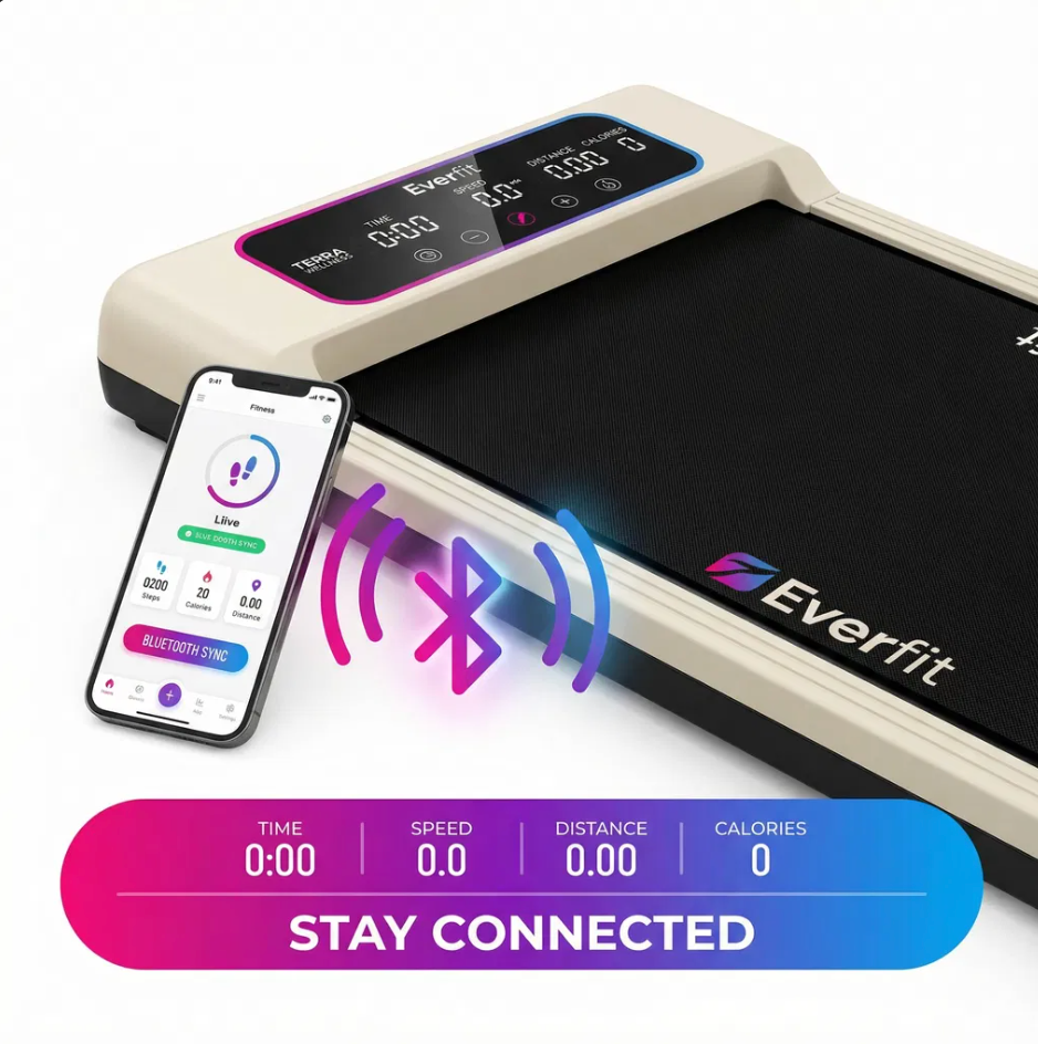 Stay connected and motivated with built-in Bluetooth—sync your walks with fitness apps to track your progress. Use the included remote to start, stop, or adjust your speed instantly. No complicated setup—just plug in and walk.
