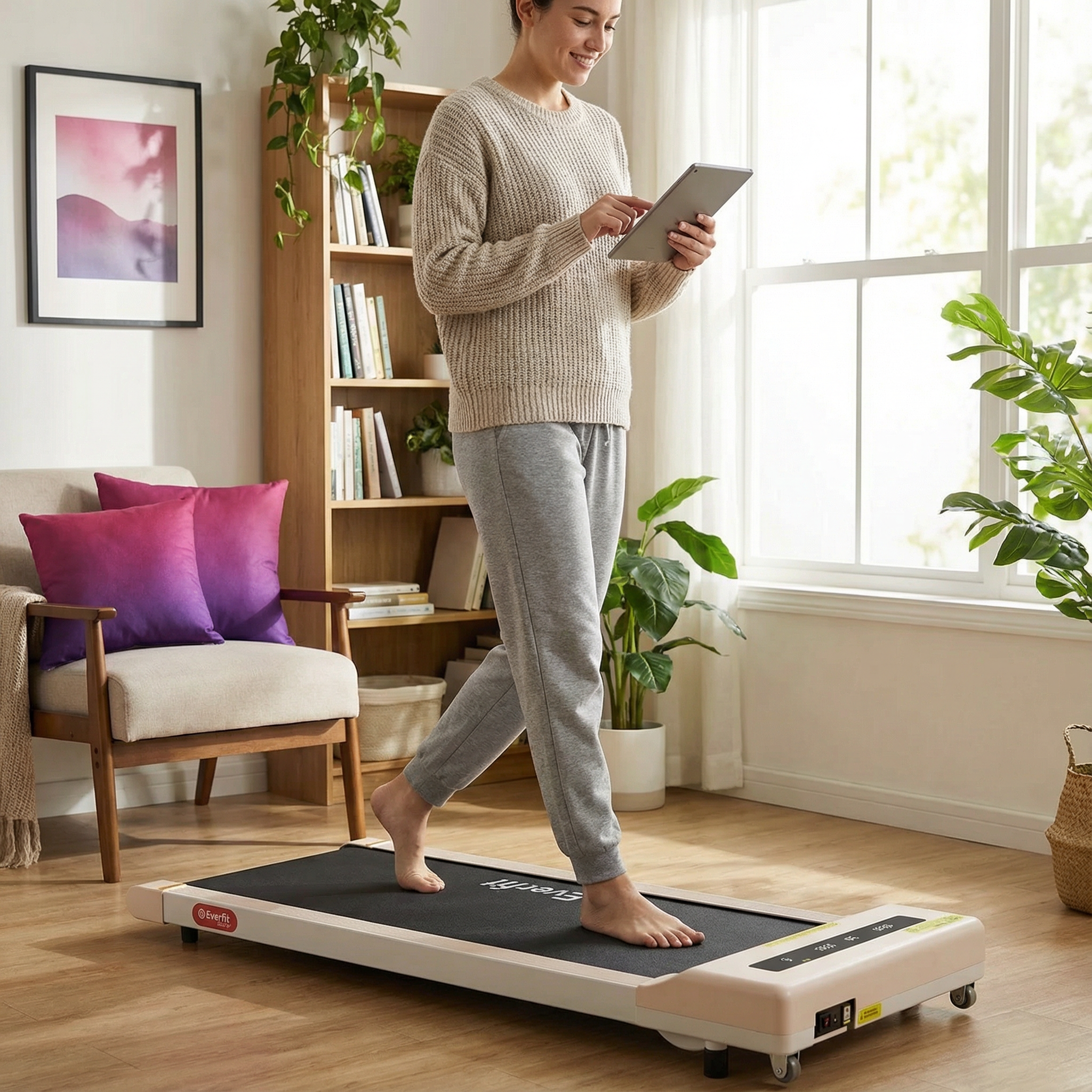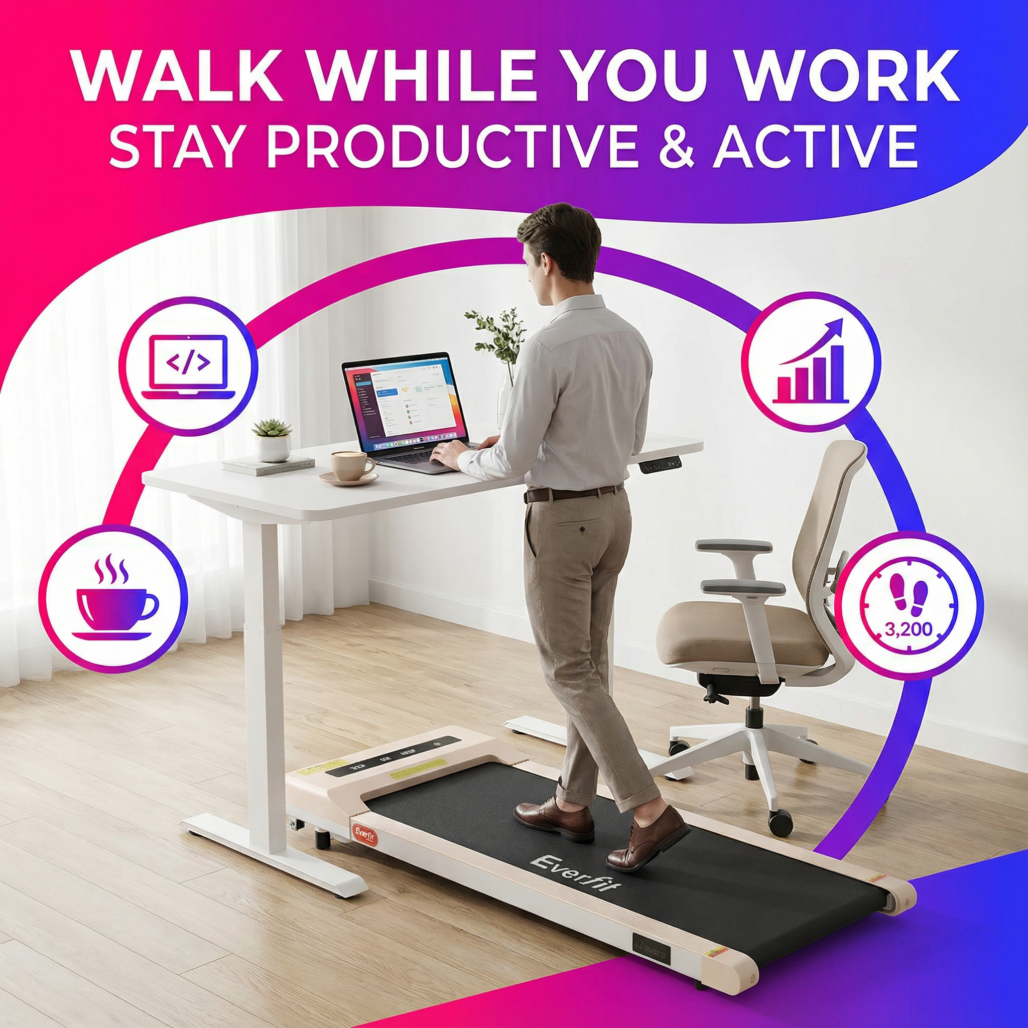 Refresh your workflow! Our Everfit Walking Pad keeps you moving while you work — boost daily steps, burn calories, and reduce stress without leaving your desk. 90-day risk-free trial + free shipping. Shop now and walk your way to better health!
