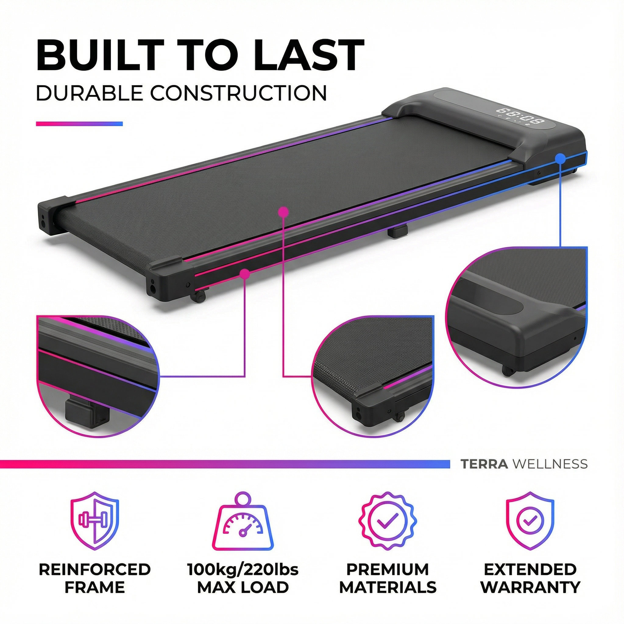 Step into a healthier lifestyle—right from your living room. Our Terra Wellness Walking Pad helps you stay active throughout the day, supporting improved circulation, better focus, and effortless calorie burn while you're working, watching TV, or simply unwinding at home.