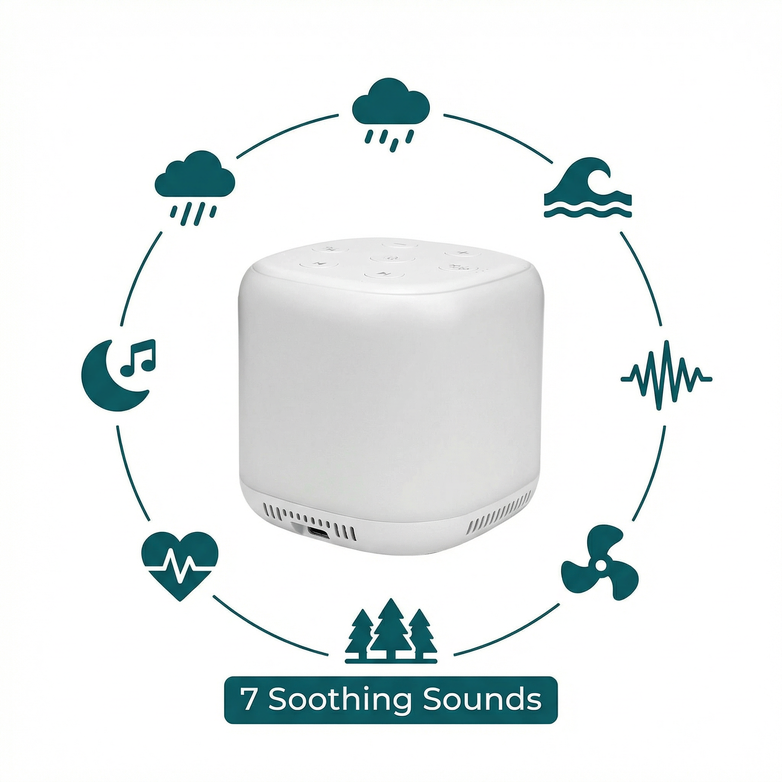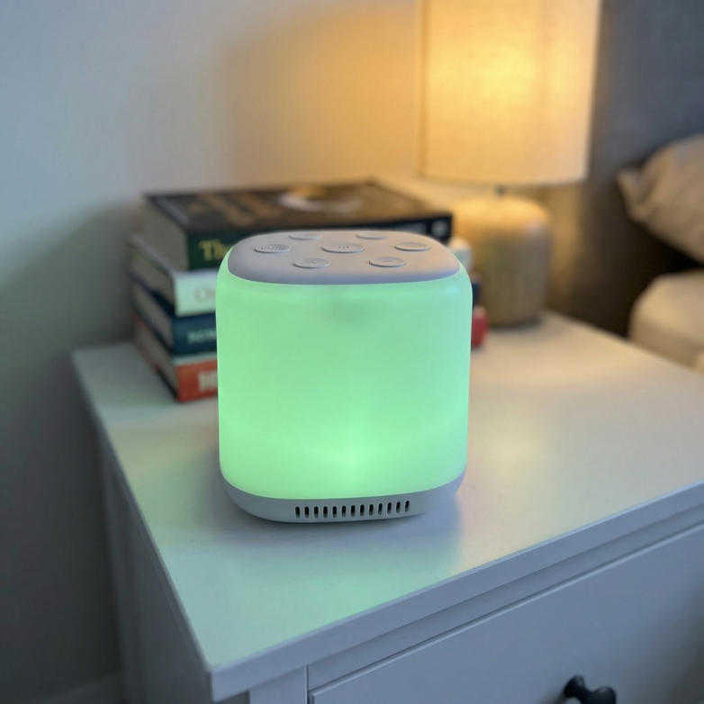 Purpose-built for sleep — not a phone app, not a generic speaker. With 7 nature sounds, 7 night light colours, and a memory function, it is the complete sleep solution in one compact device.
