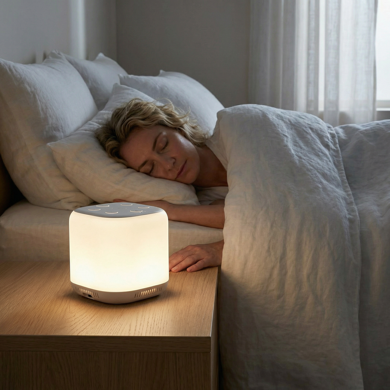 Street noise, a snoring partner, or a restless newborn — our White Noise Machine masks it all. It creates the ideal sleep environment for adults, babies, and light sleepers from the very first night.